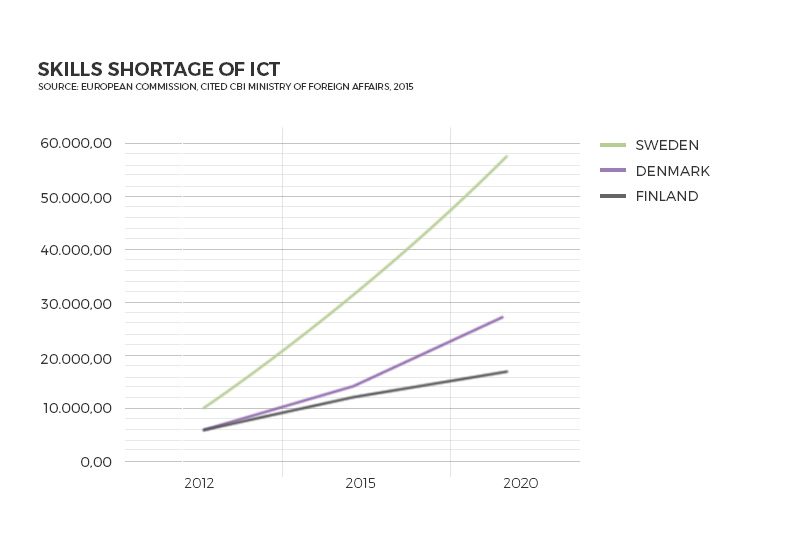 Swedish entrepreneurs are also facing skill shortages due to the small domestic market. Business services and Information and Communication Technologies (ICT) have the highest excess demand (Figure 1), particularly in Sweden.
