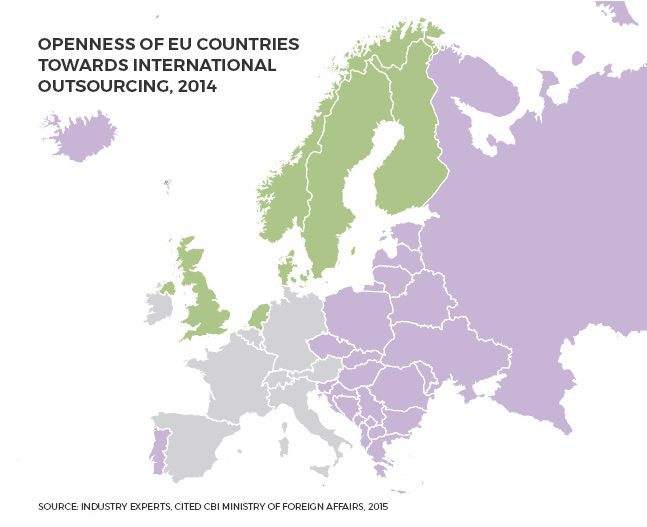 - PA Consulting (2014) has conducted a research on satisfaction from outsourcing where 73% of Swedish companies had positive outsourcing experience.